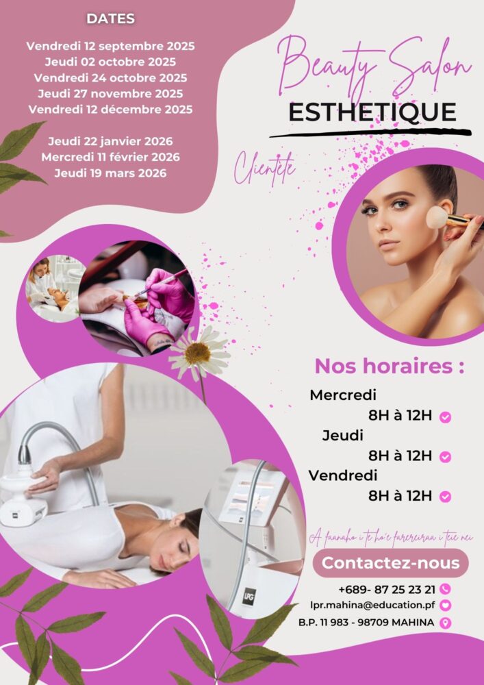 Nous avons le plaisir de vous informer des jours d’ouverture des salons pédagogiques Esthétique et Coiffure de notre lycée.